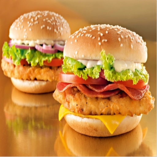 Pão + Hambúrguer de Filé de Frango 150g + Queijo Mussarela + Tomate + Alface + Batata-Frita 120g
