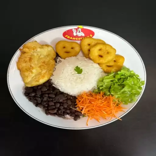 1 Filé de Frango Empanado + Arroz 100g + Salada + Batata-Carinha 150g + Feijão 100 ML